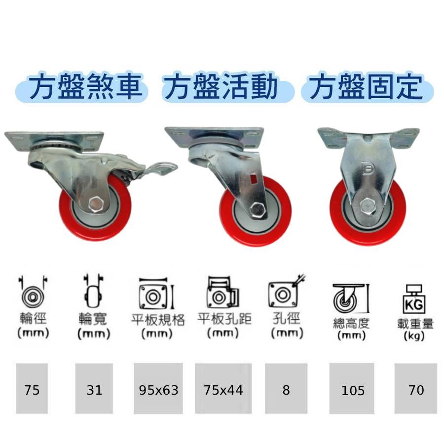 ◈ 輪子直徑75mm ,輪面寬度31mm