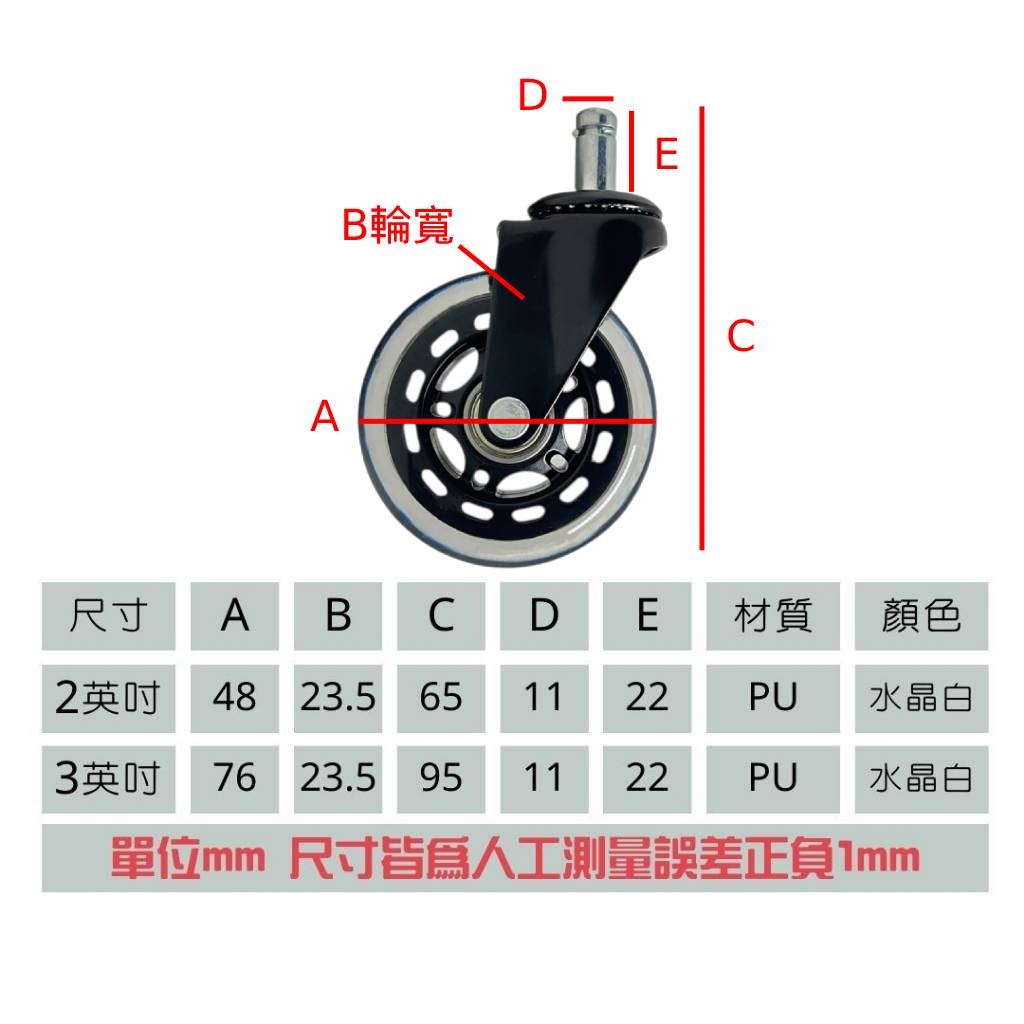 ◈ 輪子直徑76mm ,輪面寬度23.5mm