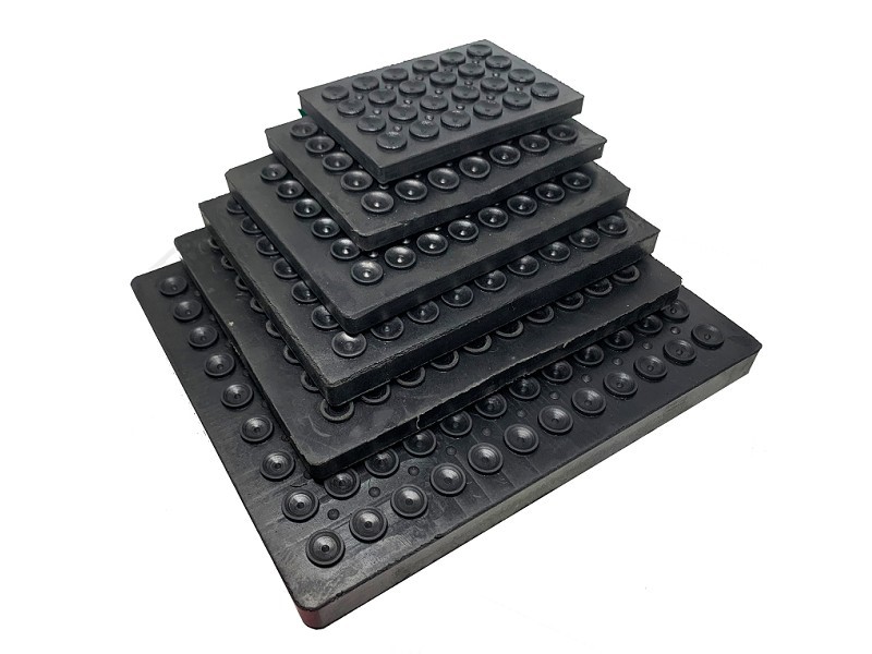 防震、吸收噪音、當地面不平時,墊在傾斜處,保持平衡。適合使用於空調箱,風機,發電機等..一般產業機械。防震橡膠主要為緩衝用途(緩衝材),常見用於家具用品、建築用品、工業設備、汽機車零件,以及各樣傳動設備所需。表面凸出加強防滑防震效果。